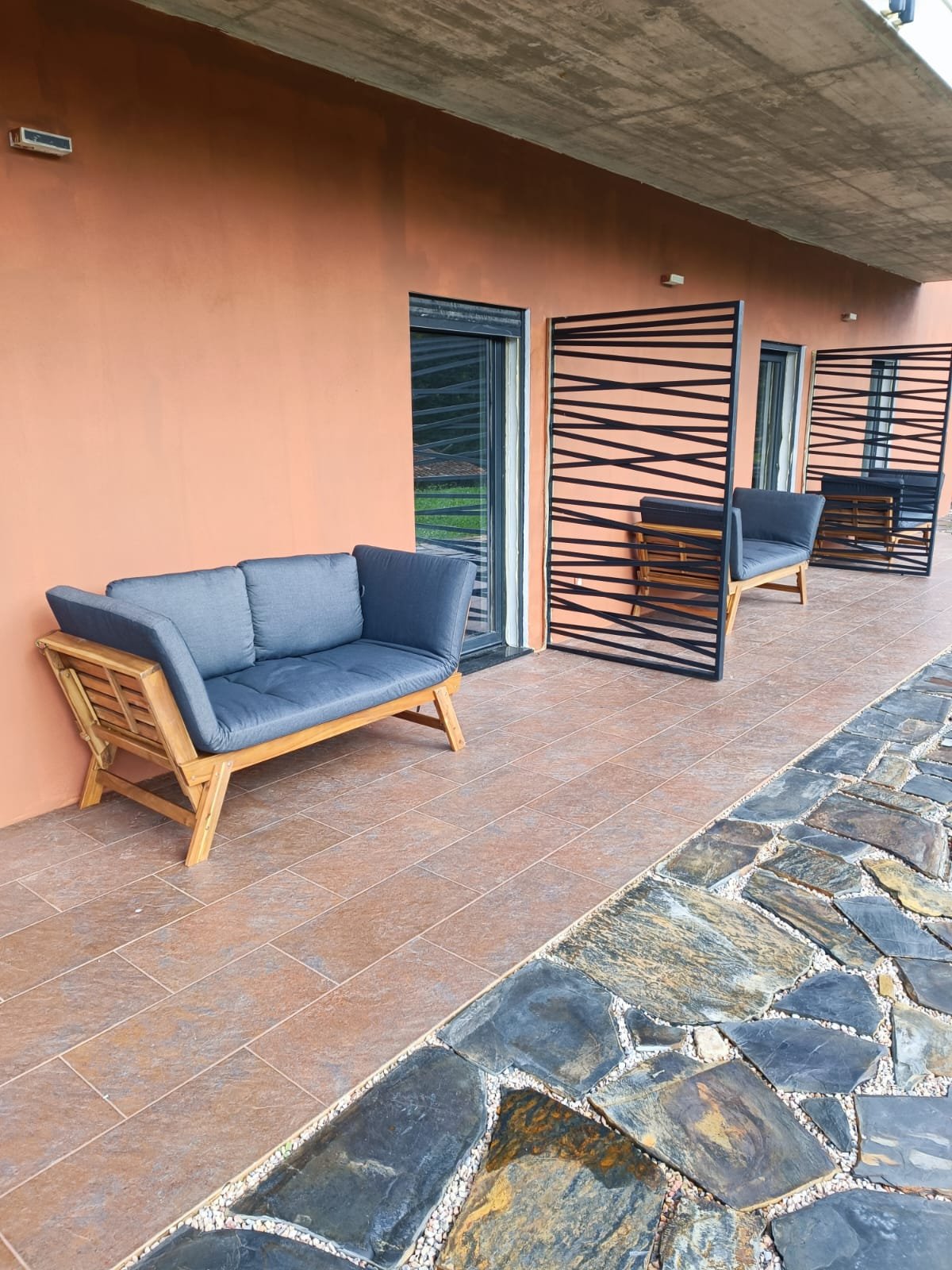 Terraço exterior com sofá e mesa